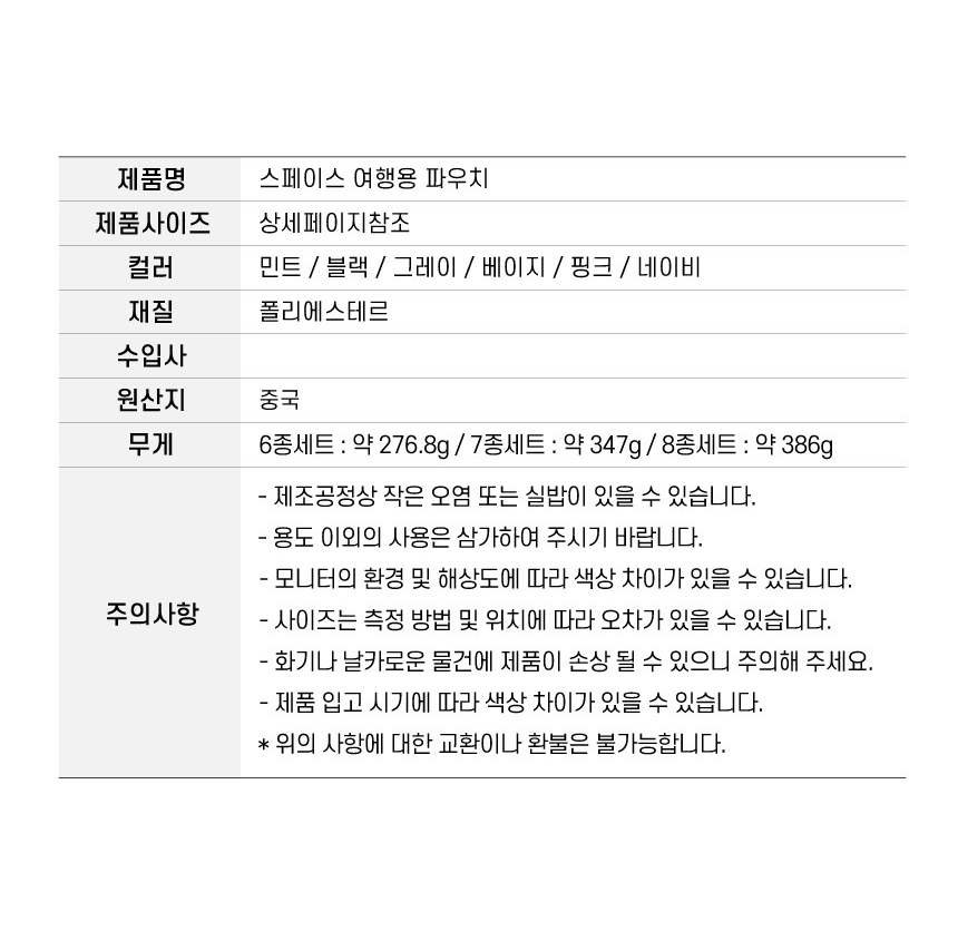 »óǰ¸í ½ºÆäÀ̽º ¿©Çà¿ë ij¸®¾î Á¤¸® ÆÄ¿ìÄ¡¼¼Æ® (7Á¾ / 8Á¾) 1¼¼Æ®