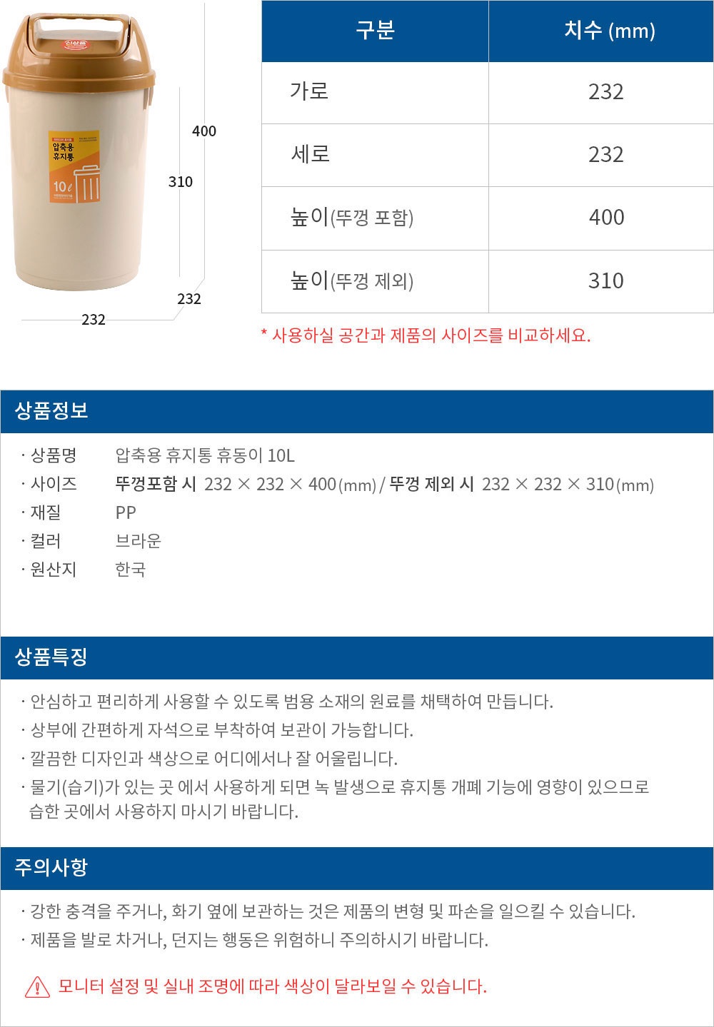 »çÀÌÁî´Â Àç´Â ¹æ¹ý°ú À§Ä¡¿¡ µû¶ó Á¶±Ý¾¿ ´Ù¸¦ ¼ö ÀÖ½À´Ï´Ù. ¹Ýµå½Ã ÀÌÁ¡ À¯ÀÇÇϽñ⠹ٶø´Ï´Ù.