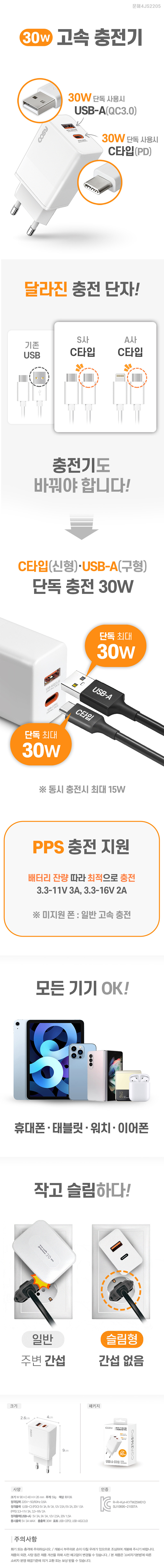 [µðÁöÅä] 30W PD PPS CŸÀÔ °¡Á¤¿ë 2Æ÷Æ® Ãʰí¼Ó ÃæÀü±â 1P