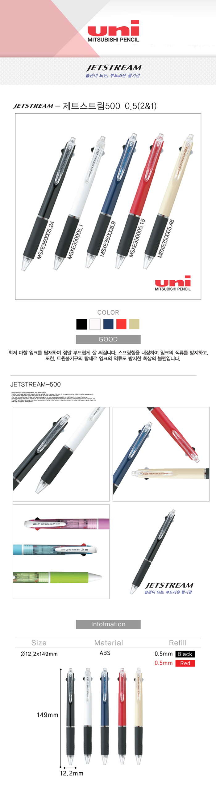 [À¯´Ï] uni Á¦Æ®½ºÆ®¸² 507 3»ö º¼Ææ 0.5mm 1P