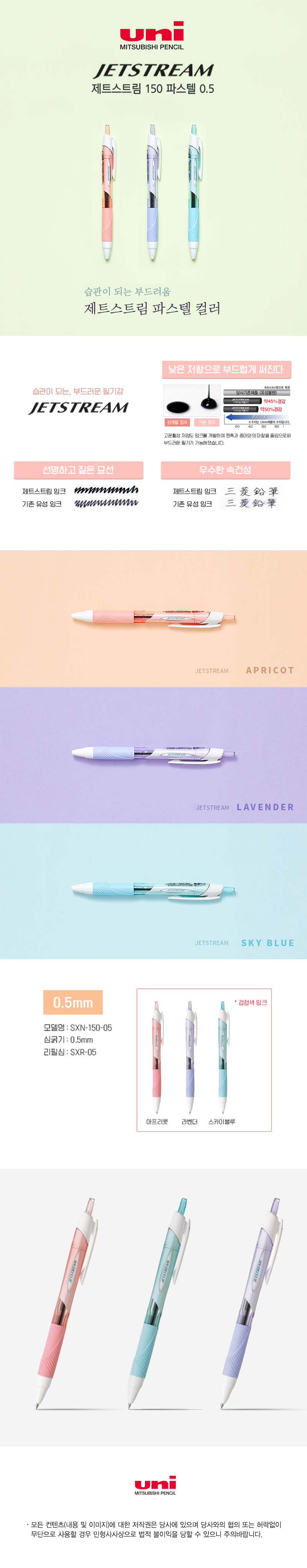 [À¯´Ï] uni Á¦Æ®½ºÆ®¸² 3»ö º¼Ææ 0.5mm 1P