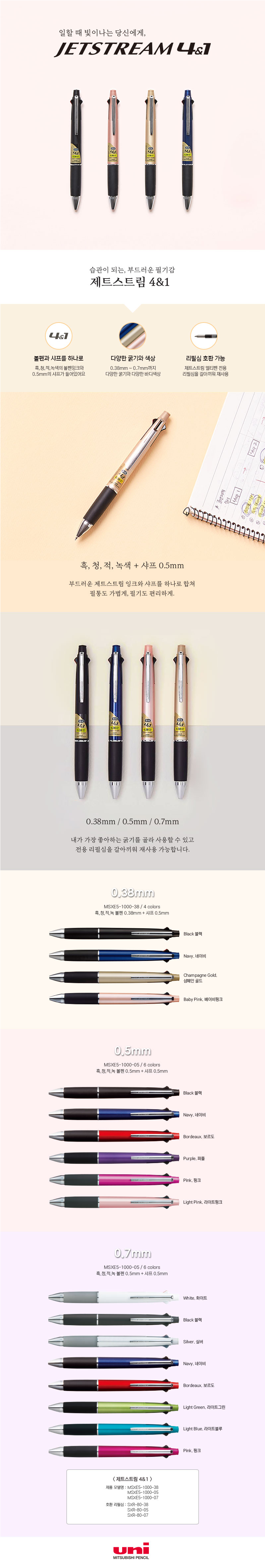 [À¯´Ï] uni Á¦Æ®½ºÆ®¸² 507 3»ö º¼Ææ 0.5mm 1P