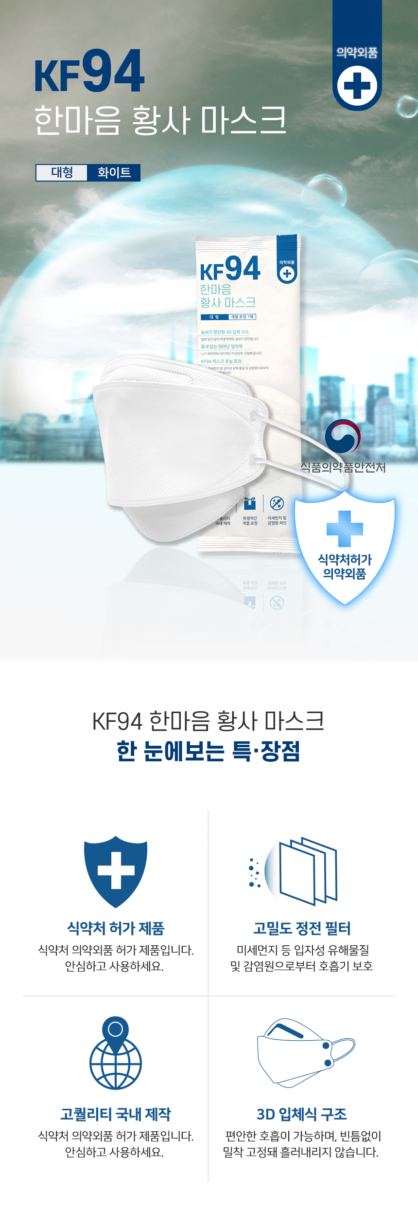 Ç»¸®¿£ ¹Ì¼¼¸ÕÁö ¸¶½ºÅ© KF94 ´ëÇü ÈÀÌÆ® 1P (ÀǾà¿Üǰ)