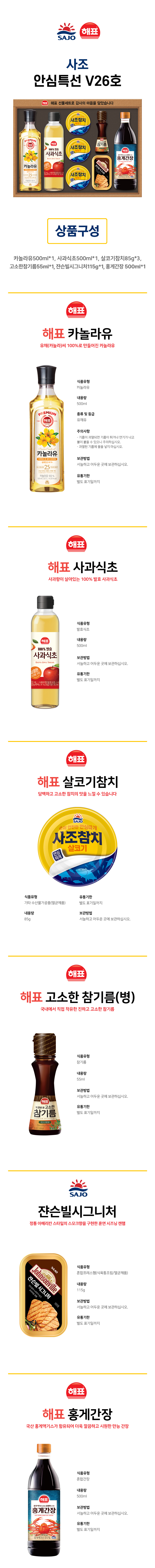 Ä«³î¶óÀ¯500ml*1P, »ç°ú½ÄÃÊ500ml*1P, »ìÄÚ±âÂüÄ¡85g*3P, °í¼ÒÇÑÂü±â¸§55ml*1P, Àò½¼ºô½Ã±×´Ïó115g*1P, È«°Ô°£Àå 500ml*1P