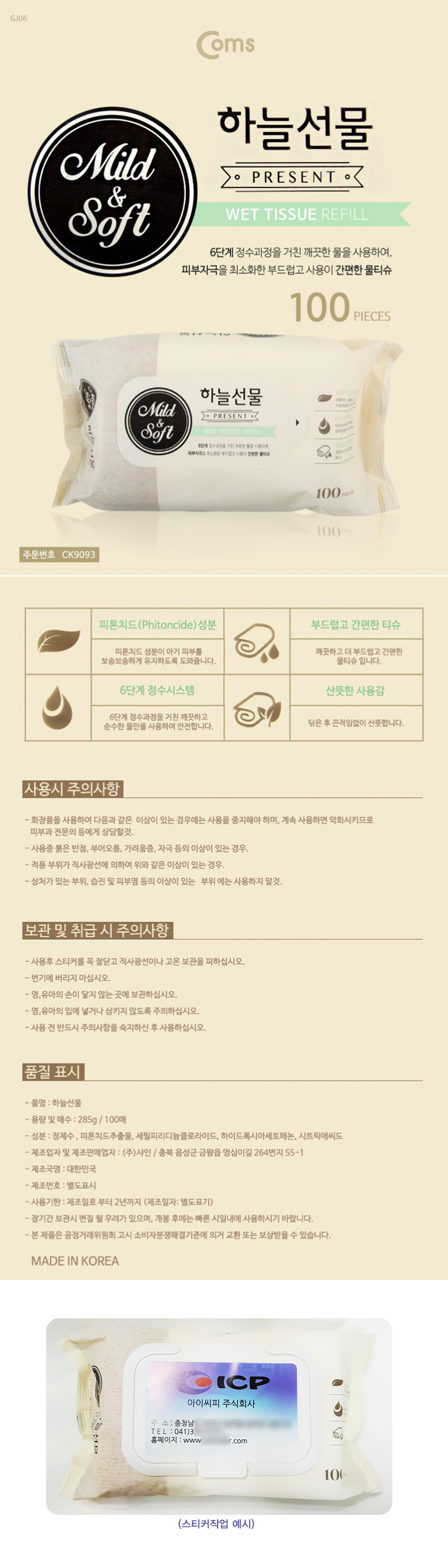 Çϴü±¹° ÇÁ¸®¹Ì¾ö ĸÇü ¹°Æ¼½´ 100¸Å