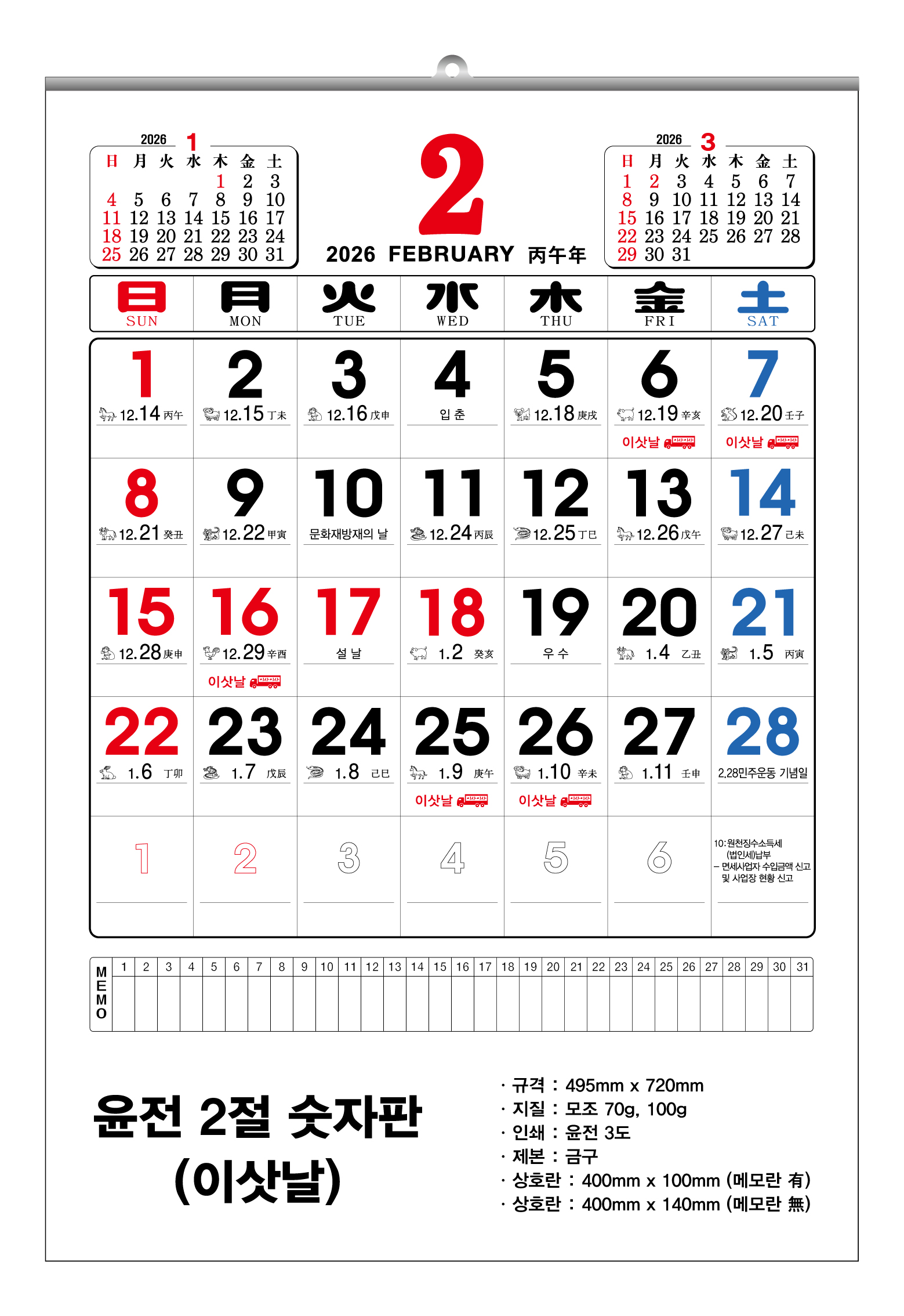 2026³â ±¹2Àý ¼ýÀÚÆÇ (UC-01) º®°ÉÀÌ ´Þ·Â 420x625mm