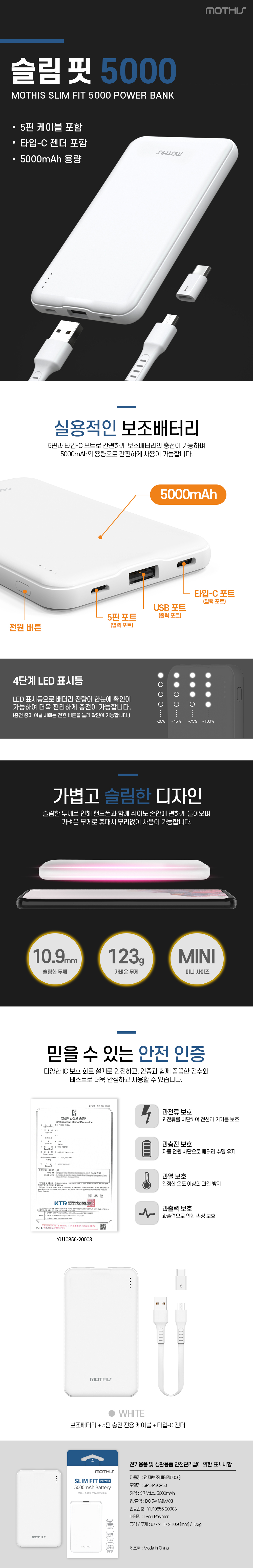 [¸ðµð½º] ½½¸²ÇÍ 5000mAh º¸Á¶¹èÅ͸® SPE-PBCP50 (CŸÀÔÄÉÀ̺í+8ÇÉÁ¨´õ)