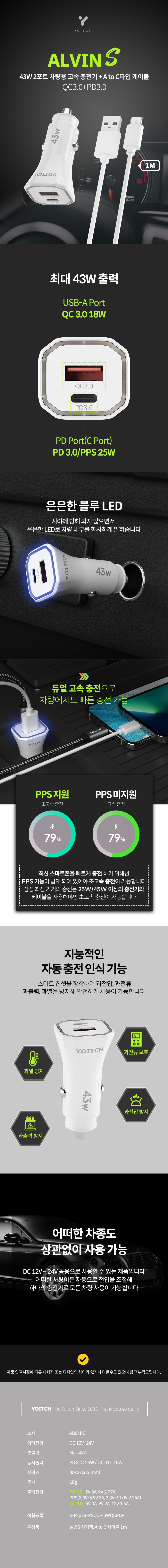 »óǰ¸í [¿äÀÌÄ¡] ¾ÙºóS LED Ãʰí¼Ó Â÷·®¿ë ÃæÀü ½Ã°ÅÀè 43W PPS USB PDŸÀÔ ¼¼Æ®