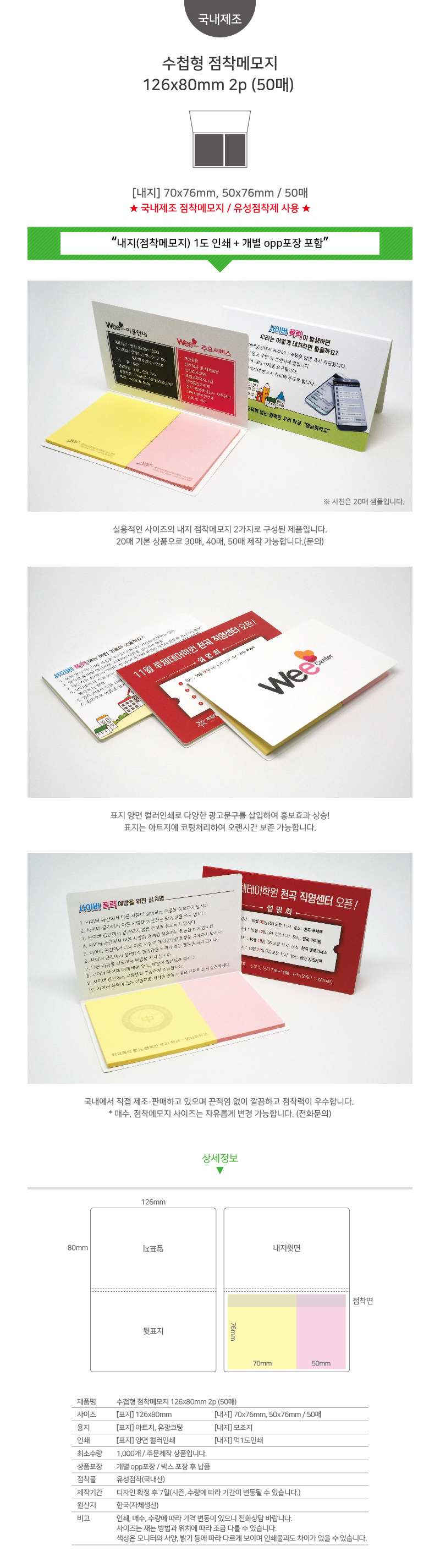 »óǰ¸í ¼öøÇü Á¡Âø¸Þ¸ðÁö 126x80mm 2P (50¸Å)