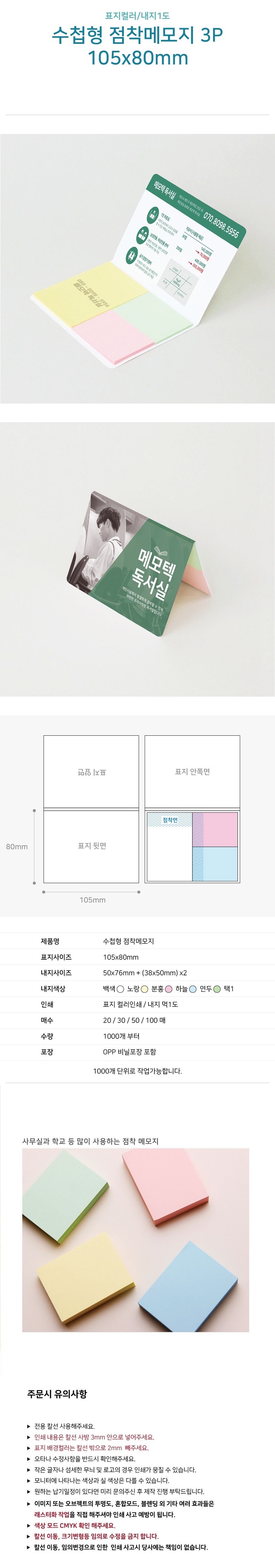 ¼öøÇü Á¡Âø¸Þ¸ðÁö 106x80mm 3P (°¡·ÎÇü) 20¸Å