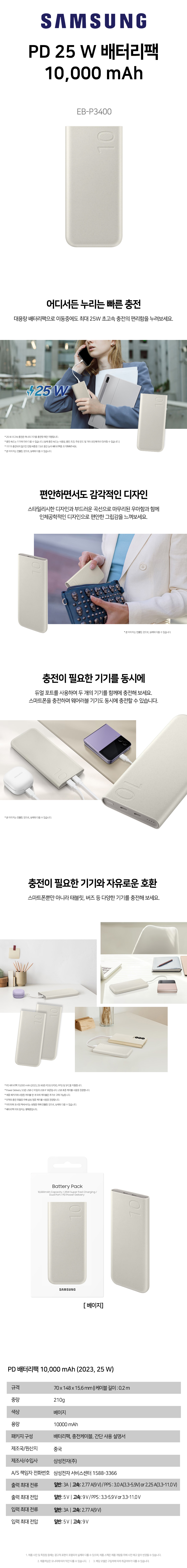 [»ï¼º] PD ¹èÅ͸®ÆÑ 10000mAh EB-P3400 º£ÀÌÁö 1P
