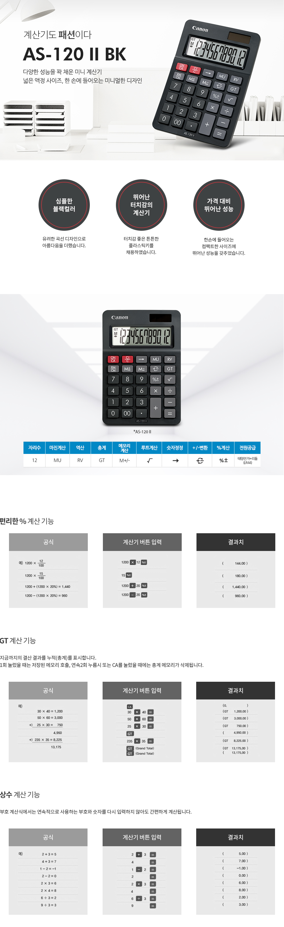 »óǰ¸í [ij³í] Ź»ó¿ëÄ÷¯ °è»ê±â AS-120 1P